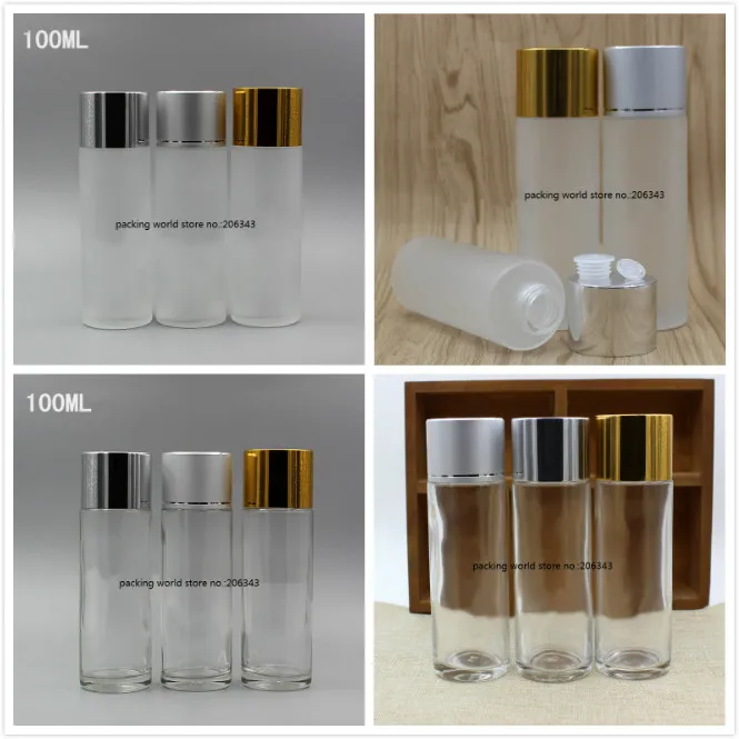 [[SPECIAL OFFERS]] 100ml frosted glass bottle with plastic stopper silver gold lid for toner toilet water lotion emulsion skin care packing one of the best