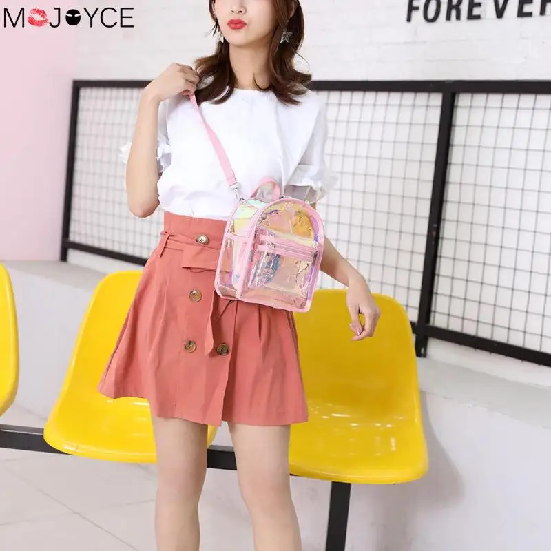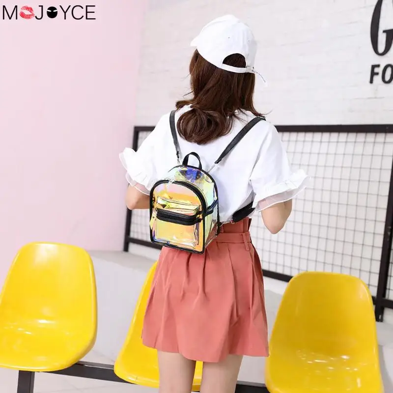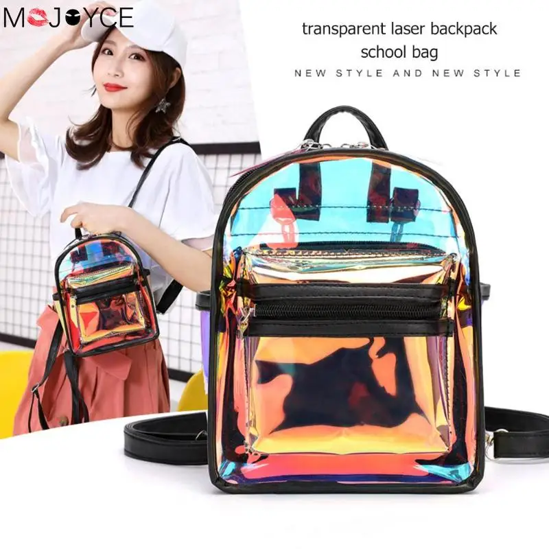 [[SPECIAL OFFERS]] 2pcs set Fashion Hip Hop Clear Laser Backpacks Women Zipper Colorful Backpack Small Shoulder Messenger School Bags Clutch Online