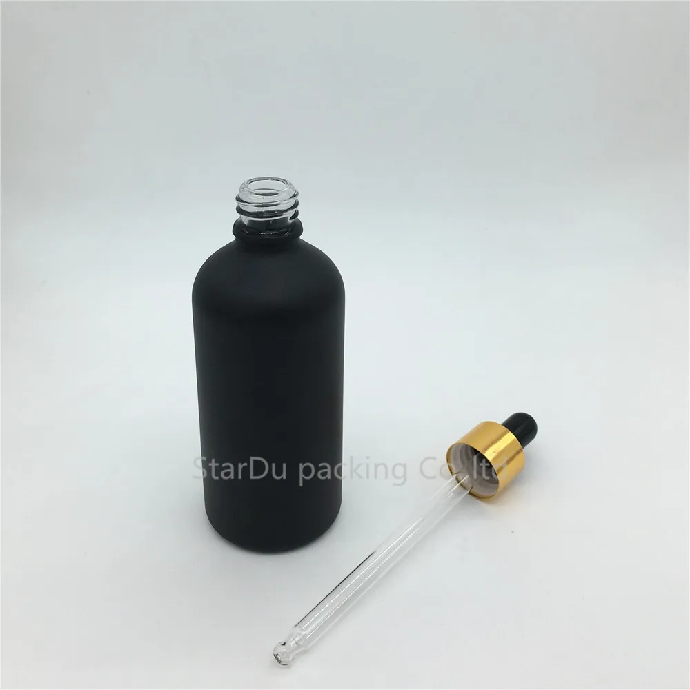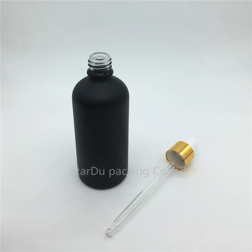 Best Free Shipping 240pcs 100ml Black Frosted Glass Essential Oil Bottle With Shiny Gold Ring Dropper Perfume RECOMMENDED TODAY ##BUY Now LIMITED DISCOUNT TODAY