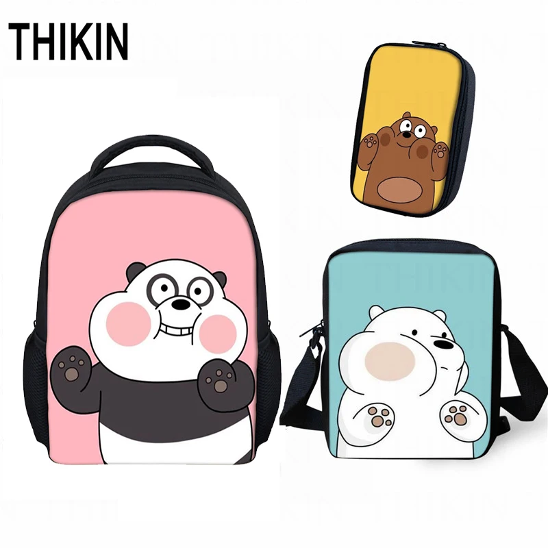 DISCOUNT my personal favorite THIKIN cute We Bare Bears Small Children School Bag 3pcs set Grizzly Panda Ice Bear Best Gift Kindergarten Book Bag Mini Mochila RECOMMENDED TODAY