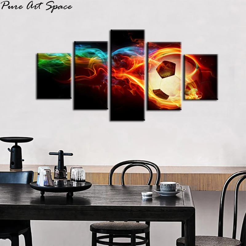 DISCOUNT my personal favorite 5 Piece Wall Art Canvas Prints Flaming Soccer Paintings Modern Football Pictures Poster Soccer Living Room Wall Decor RECOMMENDED TODAY