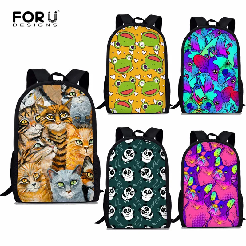 [[SPECIAL OFFERS]] FORUDESIGNS Cute Puppy Dog Kitten Cat Panda Frog Prints School Bags for Teenage Girls Japanese Schoolbags Colorful Kids Bags Online