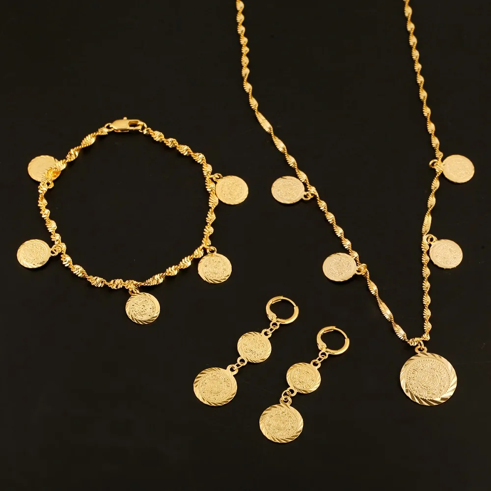 [[SPECIAL OFFERS]] Bracelet Necklace Earrings Set Germany Spain France Coin Money Sign Women 24k Gold Color Filled Arab Africa Europe Jewelry Online