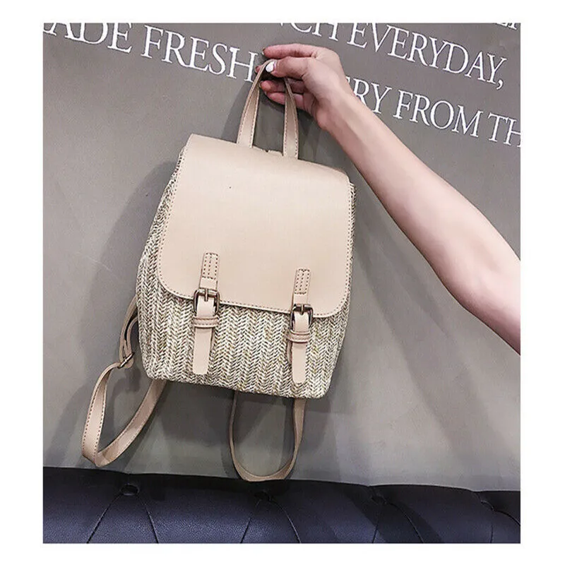 Best Women Backpack Travel Leather Patchwork Straw Small Rucksack Shoulder Bags Fashion RECOMMENDED TODAY HOT OFFERS SPECIAL PRICE Limited