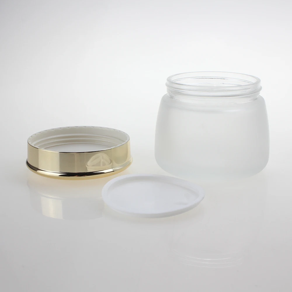 [[SPECIAL OFFERS]] 130g Frosted Cream jar bright cover glass cream jar , makeup cosmetic glass bottle with silver or gold one of the best