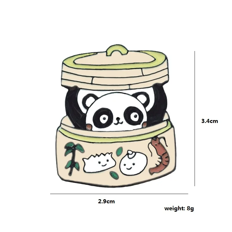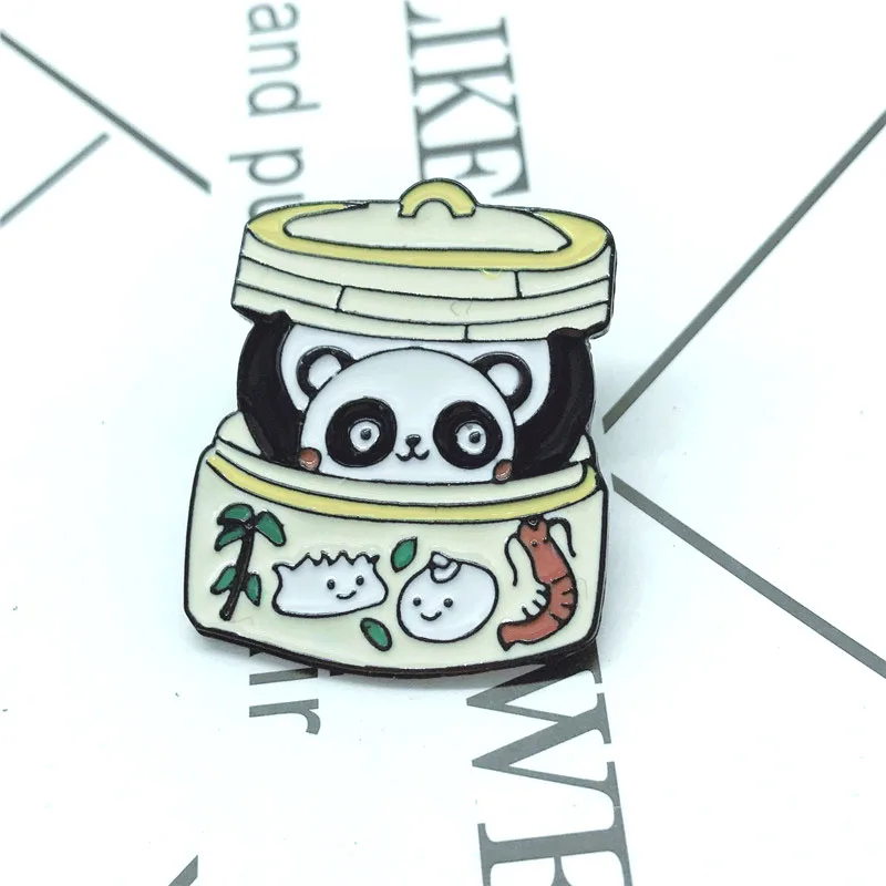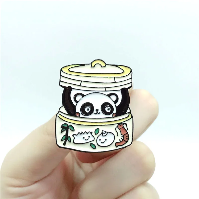 [[SPECIAL OFFERS]] Panda Bun Metal Enamel Brooch Cute Cartoon Dumpling Steamer Badge Pin Chinese Character Trendy Costume Backpack Jewelry Gift Online