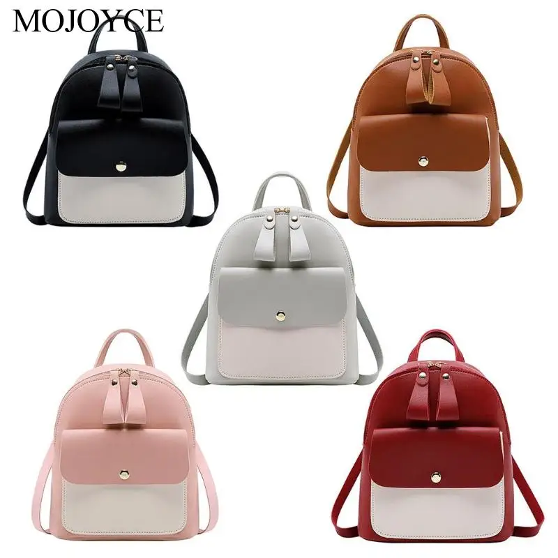 [[SPECIAL OFFERS]] Mini Hit Color Backpack Women Korean Style PU Leather Shoulder Bag Casual Travel Rucksack Satchel Ladies Small School Bags one of the best