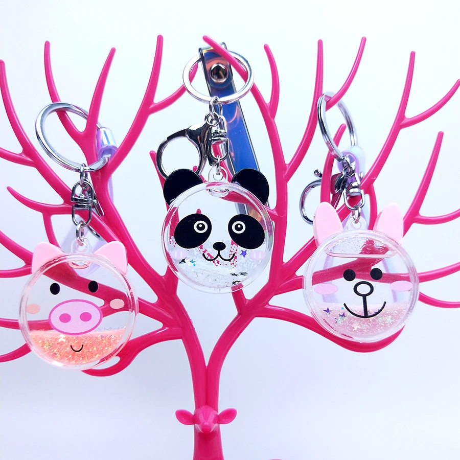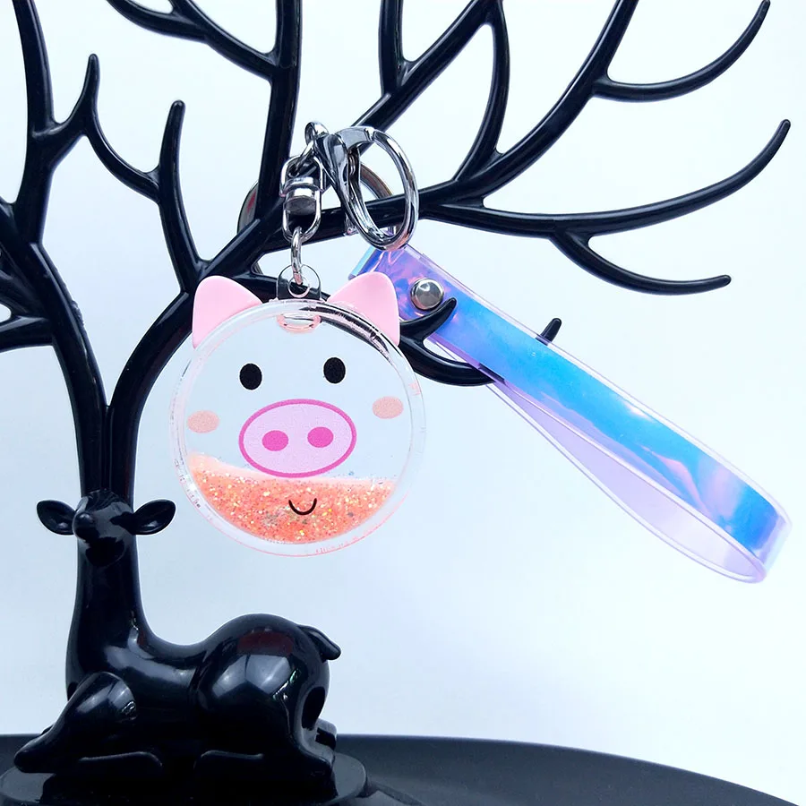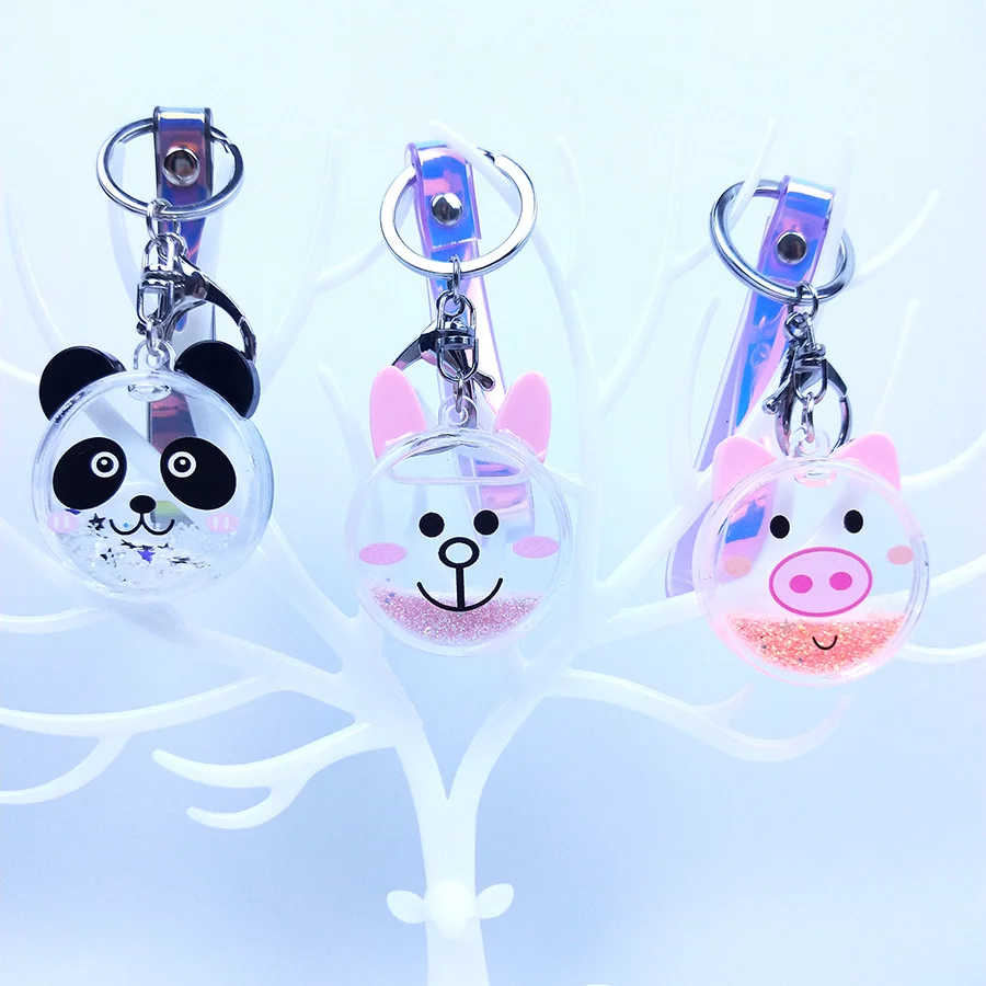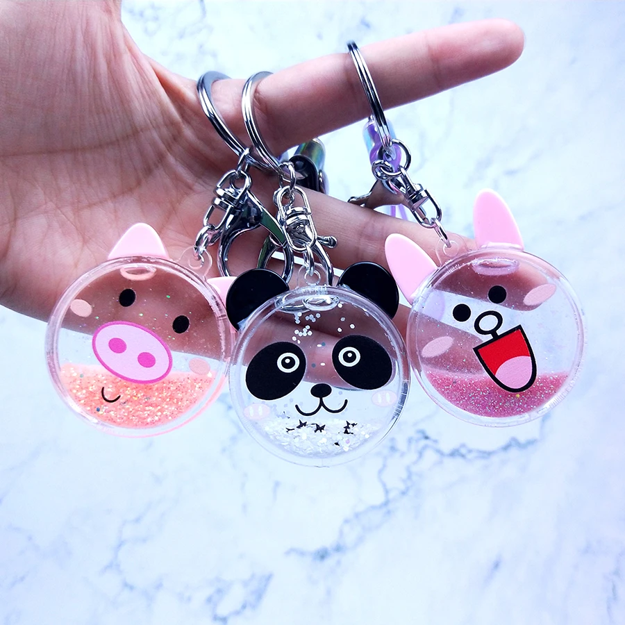 [[SPECIAL OFFERS]] Couples Women Gift Bear Pig Panda Rabbit Key Chain Glitter Quicksand Liquid Keyring Acrylic Keychain Backpack Pendant Key Fob Online