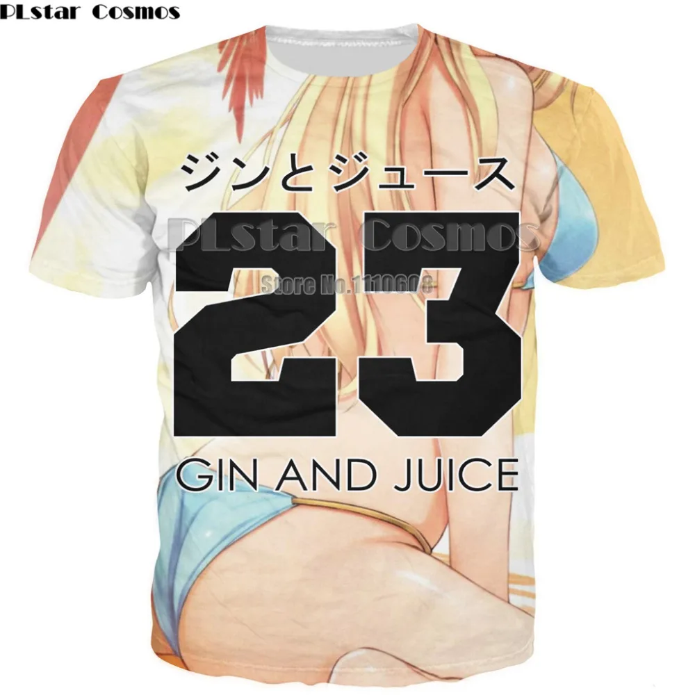 [[SPECIAL OFFERS]] PLstar Cosmos Brand New Fashion Summer Harajuku Gin and Juice Print Shirt O Neck Short Sleeve T Shirt Women men Tops T shirt one of the best