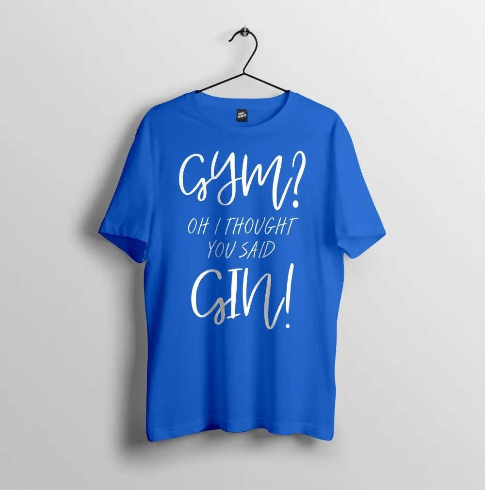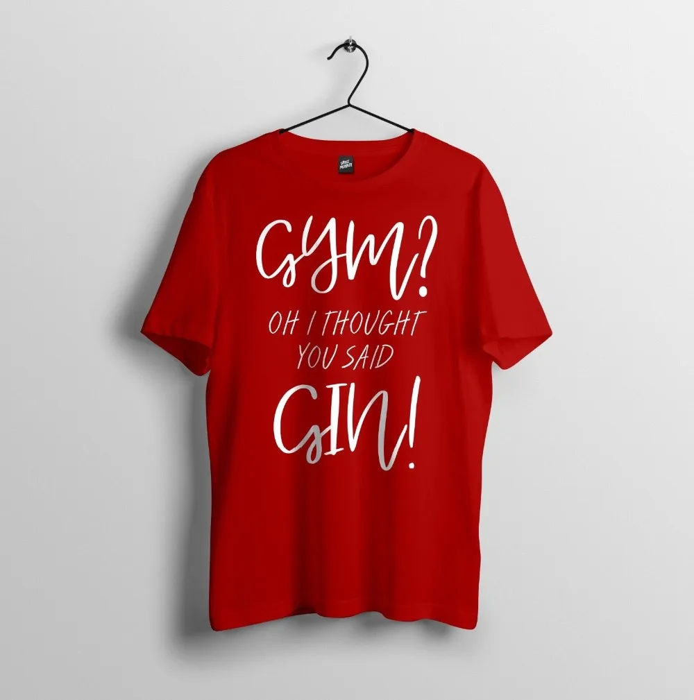 [[SPECIAL OFFERS]] Gin Not Gym Funny Pun Fashion Comedy Men Unisex 2019 Fashion Color Funny O Neck Casual Movie Tee Shirts one of the best
