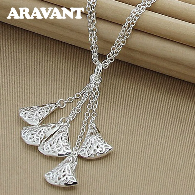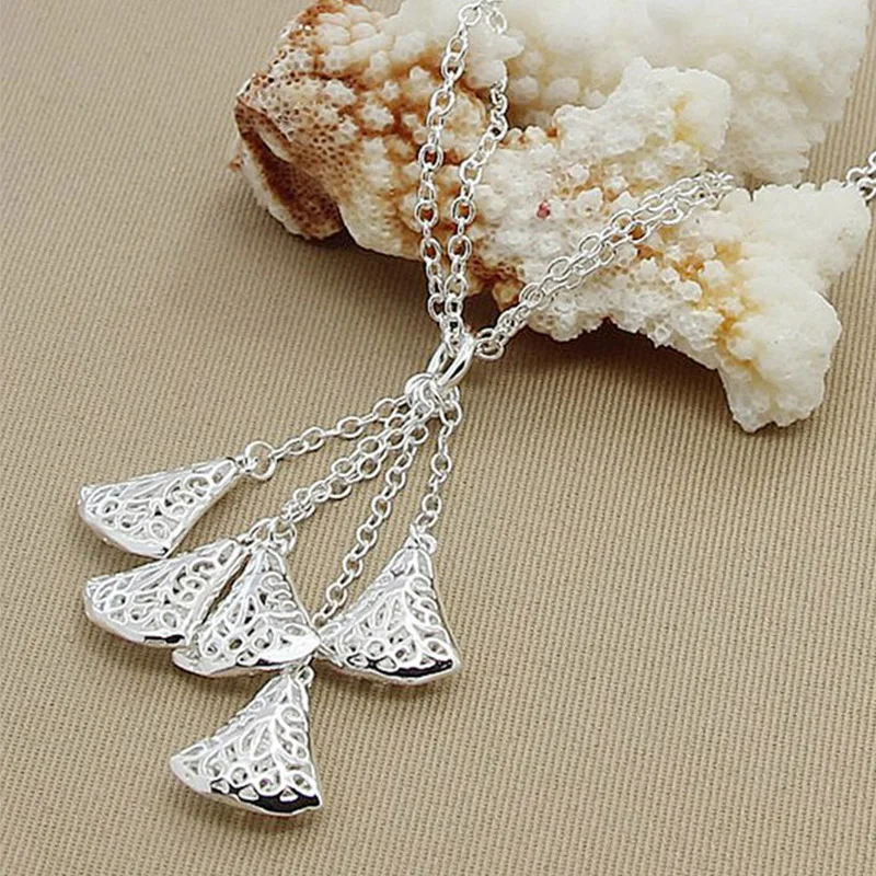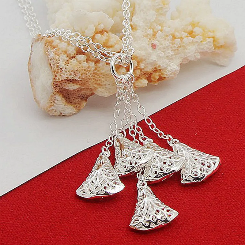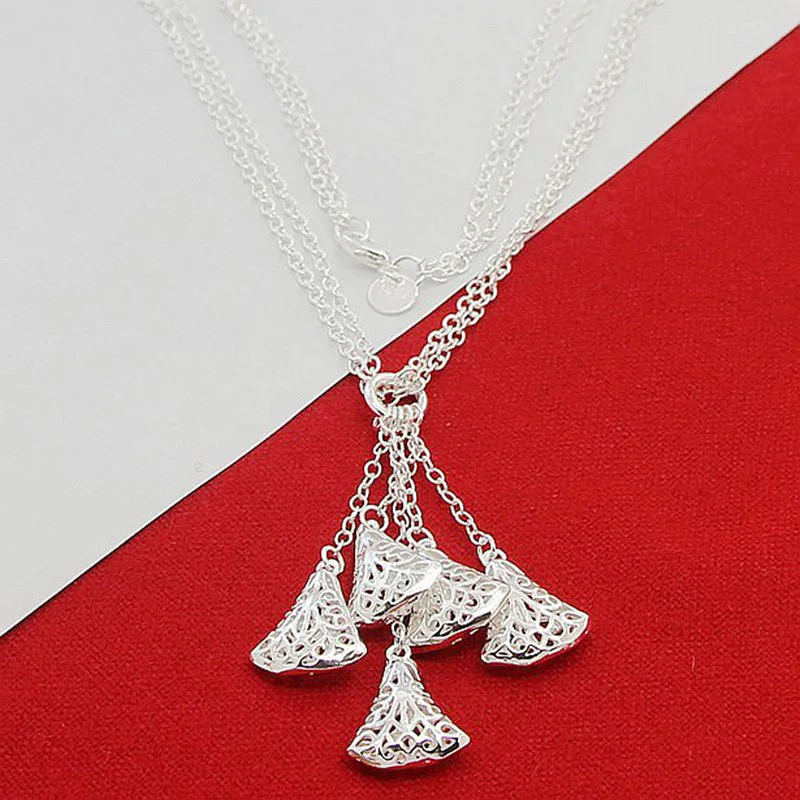 DISCOUNT my personal favorite 925 Jewelry Fringe Fan Shape Pendant Multi Chain Long Necklace For Women Party Silver Plated Jewelry RECOMMENDED TODAY