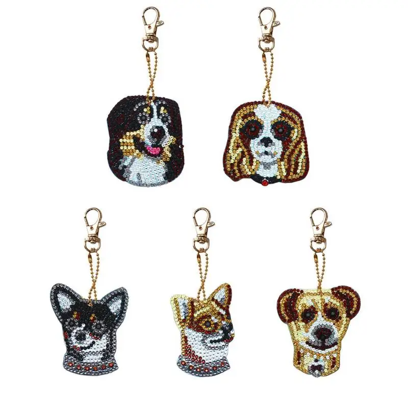 [[SPECIAL OFFERS]] 5pcs DIY Full Drill Diamond Painting Pendants Panda Dolphin Dog Shaped Acrylic Key Chain Exquisite Craft Backpack Accessories one of the best