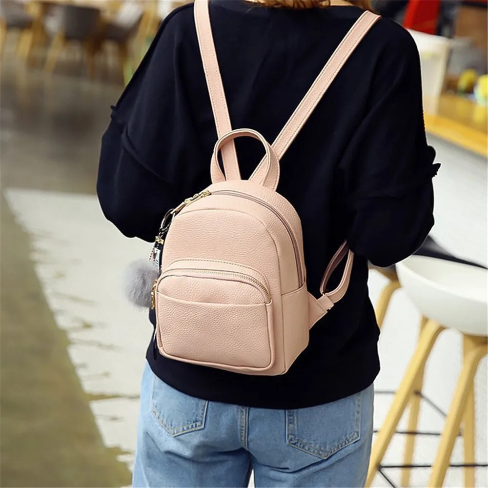 DISCOUNT definitely the PU Leather Mini Backpacks Students Fuzzy Ball Pendant Shoulder Schoolbags Female Soft Women Fashion Small Travel Bags Back Pack RECOMMENDED TODAY
