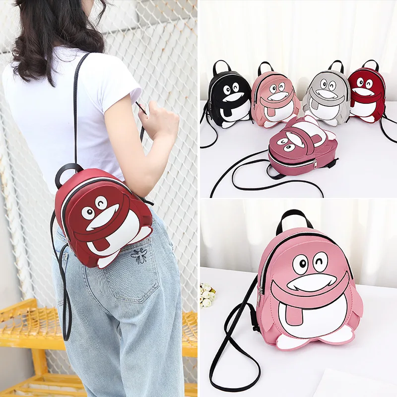 [[SPECIAL OFFERS]] Women Small Backpack Cartoon Penguin Design Phone Bag Fashion Leather Bags Mini Bear Bag Online