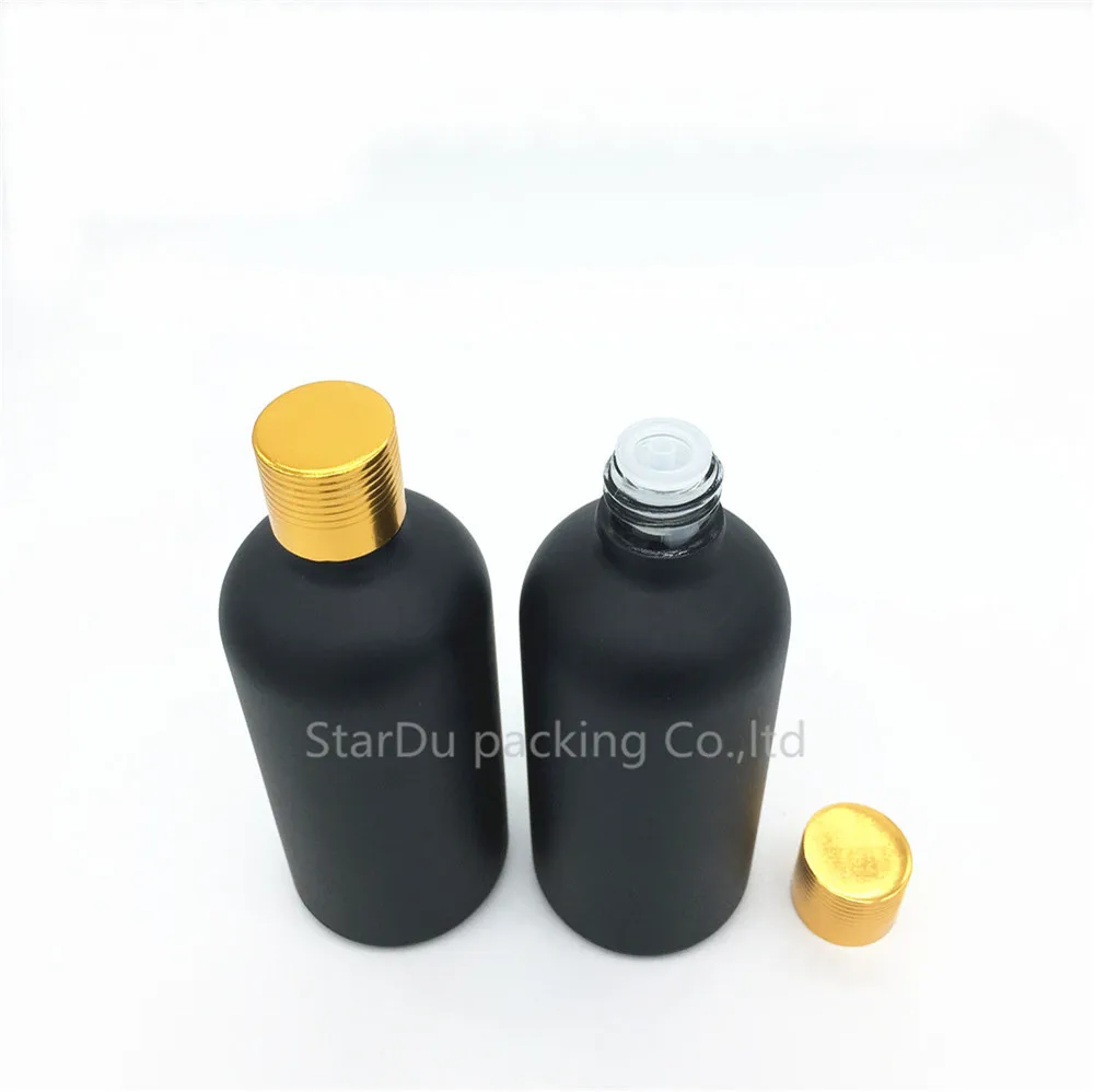 DISCOUNT definitely the Free Shipping 100ML Black Frosted Glass Bottle Vials Essential Oil Bottle with gold screw cap, 200pcs lot Perfume bottles RECOMMENDED TODAY